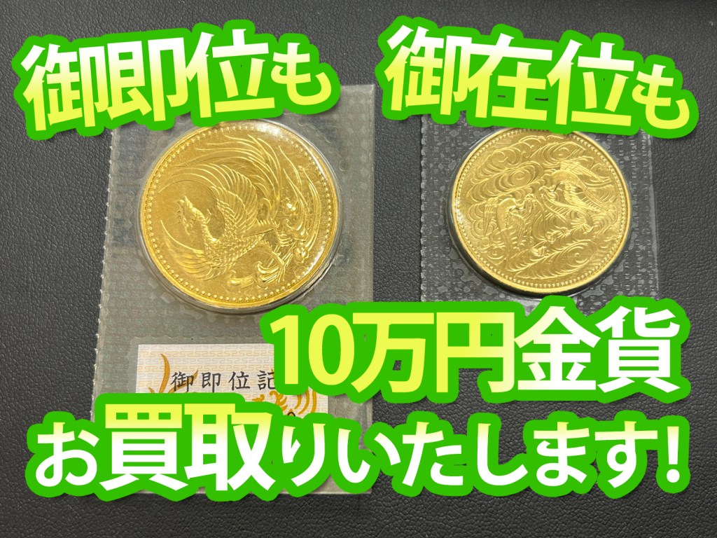 御在位・御即位どちらの10万円金貨も高値でお買取りしております。