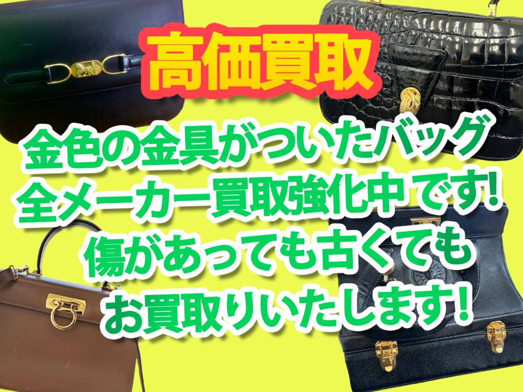 - ゴールドカラーの金具を使用しているレザーバッグ、全メーカー、メーカー問わず積極的にお買取りしております。 メーカー表記がないお品物でもお買取りしております。