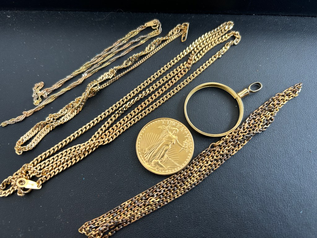 金相場高騰中、お使いにならない金のアクセサリーお買取りいたします。